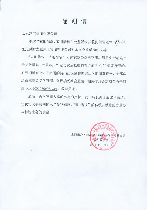 活動(dòng)結(jié)束后,集團(tuán)公司將全部衣物向天龍救援隊(duì)進(jìn)行了捐贈(zèng)。