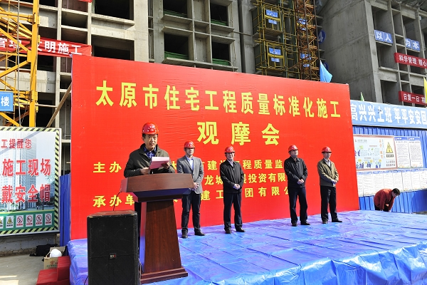 2015年4月3日上午,為貫徹落實(shí)建設(shè)部全國工程質(zhì)量治理兩年行動電視電話會議和山西省住建廳、太原市住建委工程質(zhì)量治理兩年行動推進(jìn)會議精神,進(jìn)一步規(guī)范全市建筑質(zhì)量標(biāo)準(zhǔn)化施工,保障住宅工程質(zhì)量。由太原市建設(shè)工程質(zhì)量監(jiān)督站、太原市龍城發(fā)展投資有限公司主辦,太原建工集團(tuán)有限公司承辦的“太原市住宅工程質(zhì)量標(biāo)準(zhǔn)化施工觀摩會”在我公司承建的“太原市府東街東延棚戶區(qū)改造安置用房項(xiàng)目”現(xiàn)場舉行。