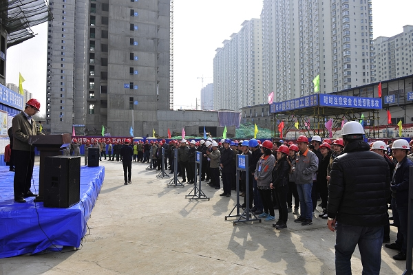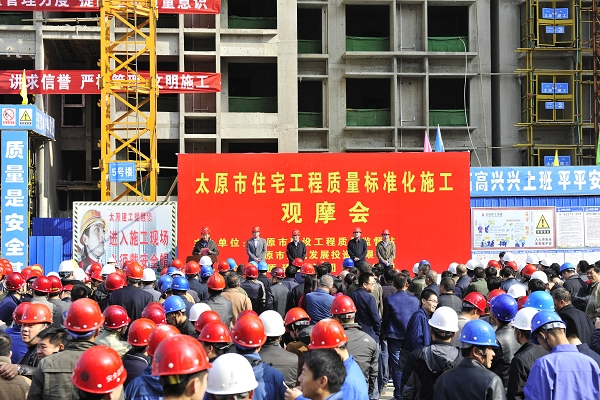 2015年4月3日上午,為貫徹落實建設部全國工程質(zhì)量治理兩年行動電視電話會議和山西省住建廳、太原市住建委工程質(zhì)量治理兩年行動推進會議精神,進一步規(guī)范全市建筑質(zhì)量標準化施工,保障住宅工程質(zhì)量。由太原市建設工程質(zhì)量監(jiān)督站、太原市龍城發(fā)展投資有限公司主辦,太原建工集團有限公司承辦的“太原市住宅工程質(zhì)量標準化施工觀摩會”在我公司承建的“太原市府東街東延棚戶區(qū)改造安置用房項目”現(xiàn)場舉行。