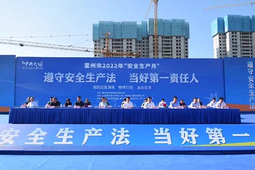 6月28日,霍州市2022年“安全生產(chǎn)月”“遵守安全生產(chǎn)法,當(dāng)好第一責(zé)任人”建筑工地應(yīng)急救援演練在太原建工集團(tuán)承建的麗景•中央公園項(xiàng)目舉行。